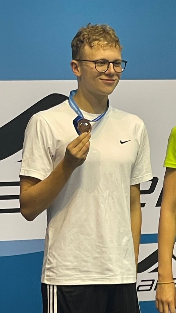 Richtig schnell unterwegs war an diesem Samstag auch Titus Andre Kossler (2009) von der SGS Hannover. Titus sicherte die fünfte Medaille für das LSN Team an diesem Samstagnachmittag auf der 200 m Bruststrecke. Im Vorlauf konnte Titus Andre sich bereits von 2:29,74 auf 2:27,70 verbessern und holte dann im Finale weitere 2 Sekunden raus. Mit einer sehr guten neuen Bestzeit von 2:25,19 schlug er nur 8 Hundertstel hinter dem Zweitplatzierten auf dem Bronzerang an.