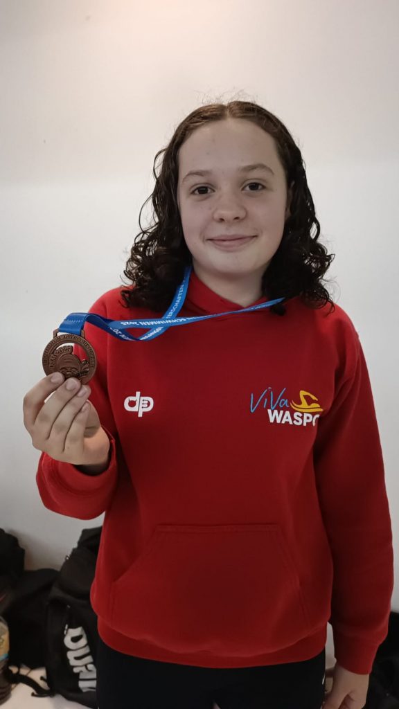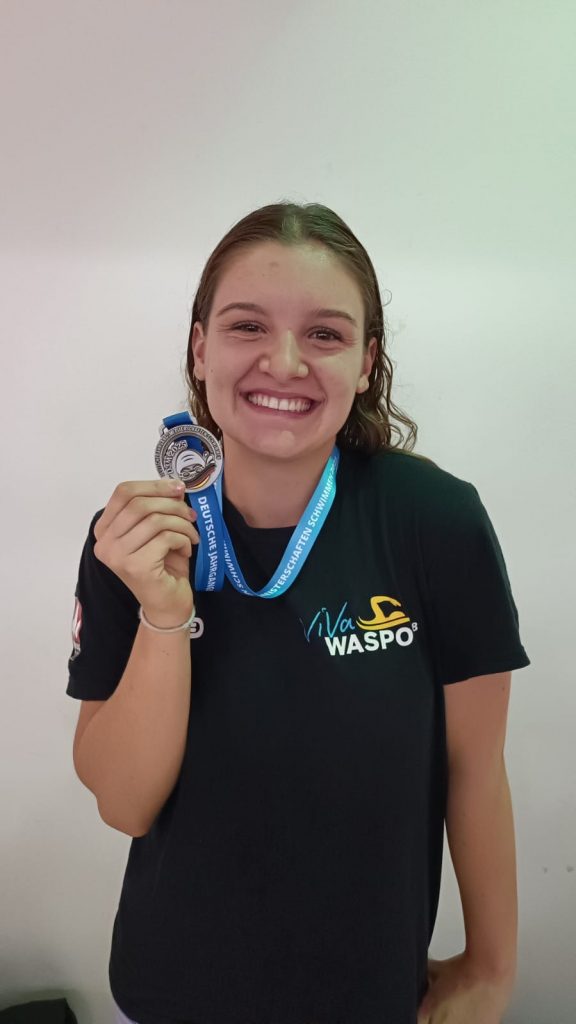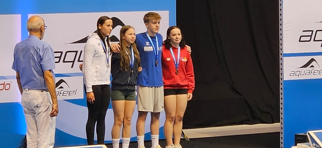 Den ersten Wettkampftag begonnen hatte aber die lange kräftezehrende 200 m Schmetterlingsdistanz. Bei sechs Finalisten und drei Medaillenerfolgen sah es hier gleich zu Anfang richtig gut aus für die Niedersachsen. Nach Platz 5 im Vorlauf mit einer Endzeit von 2:24,80 konnte Josephine Müller (2010 / W98 Hannover) in ihrem Finale nochmal richtig nachlegen und schwamm mit neuer Bestzeit von 2:22,14 auf den Bronzerang. Im Jahrgang 2007 waren gleich zwei Schwimmerinnen dabei. Anisa Sabovic (2007 / W98 Hannover) konnte ihre Vorlaufzeit von 2:21,00 ebenfalls enorm steigern und schwamm in 2:18,77 zur einzigen Silbermedaille an diesem Tag. Im gleichen Lauf konnte Sofie Gügelmeyer (SV Wasserfreunde Dalum) nicht an die Zeit vom Vorlauf anknüpfen und kam in 2:33,28 auf Platz 8.