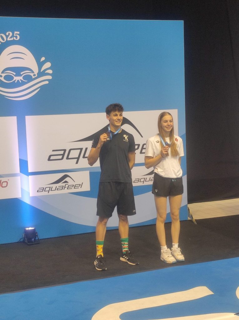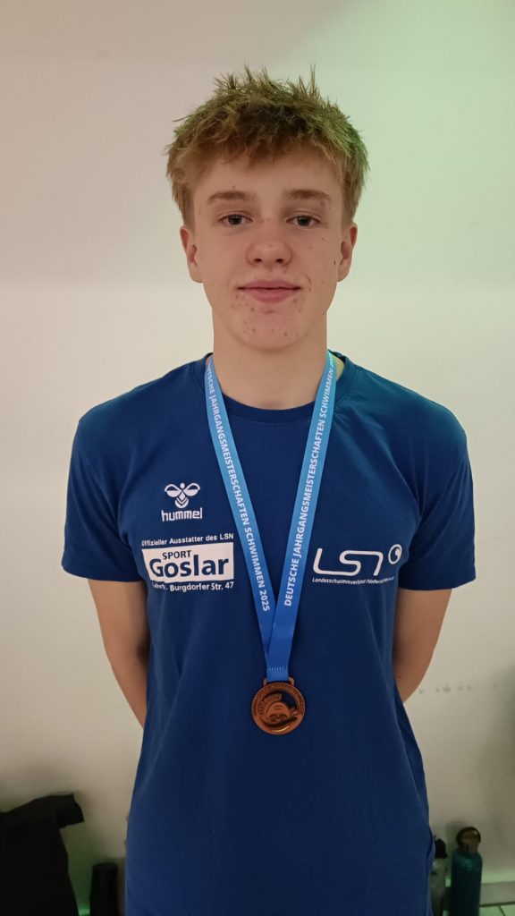 Gleich am ersten Tag stand mit den 100 m Freistil ein Veranstaltungshighlight auf dem Programm. Gleich vier Niedersachsen hatten sich für die jeweiligen Jahrgangfinals qualifiziert, aber Daniel Olenberg (2007) vom Vfl Osnabrück konnte sich den begehrten obersten Treppchenplatz sichern. Mit 0:51,84 hatte er sich als Drittschnellster für dieses Finale qualifiziert und ließ hier nichts anbrennen. Mit neuer Bestzeit von 0:51,07 war er genau zehn Hunderstel schneller, als sein Verfolger vom Team Bochum und konnte sich die begehrte Goldmedaille abholen. Ebenfalls in diesem Finale über 100 m Freistil mit am Start war Mitja Ebeling (W98 Hannover). Er schwamm auf Platz 6 in 0:51,77. Im Finale der jüngsten Schwimmer dieser DJM, dem Jahrgang 2012 war Lasse Palle Phielipeit vom Celler Schwimmclub mit einer tollen neuen Bestzeit von 0:56,48 zur Bronzemedaille geschwommen. Eng war es für Timo Wentland (2011 / SSG Braunschweig) in seinem 100 m Freistilfinale. Den Vorlauf hatte er mit einer um 42 Hunderstel verbesserten Zeit in 0:55,31 auf Platz 3 beendet. Im Finale konnte er sich erneut steigern und schwamm in 0:54,98 nochmal Bestzeit. Doch für einen Platz auf dem Treppchen sollte es nicht reichen. Der Drittplatzierte war bereits nach 0:54,78 am Zielanschlag.