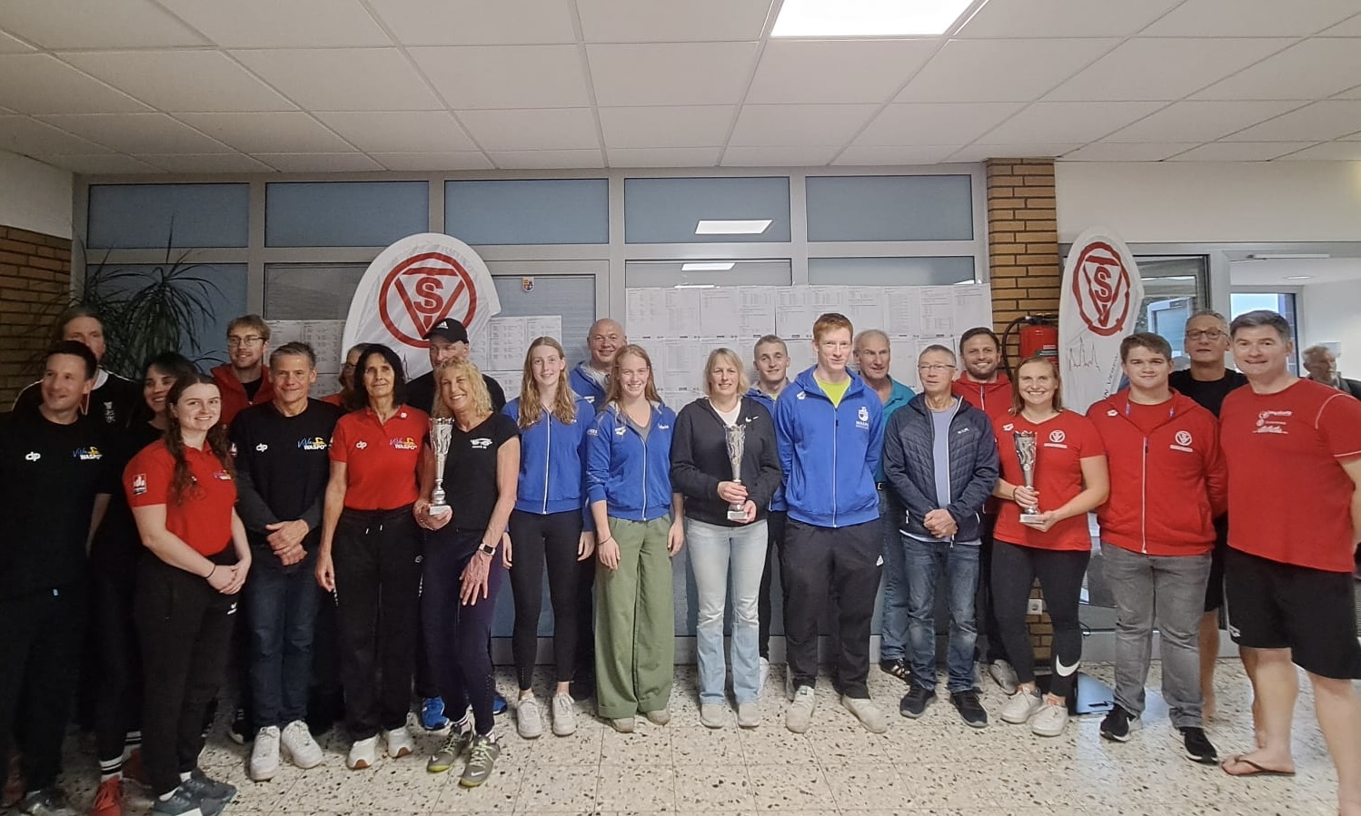 Immer beliebter wird die DMS der Masters nun auch in Niedersachsen. Nach der tollen Resonanz im Vorjahr mit 12 Teams, hatten in diesem Jahr sogar 13 Mannschaften aus 12 Vereinen zum Vorkampf Niedersachsen und Bremen im Hallenbad am Gymnasium in Lohne gemeldet. Vergeben werden in diesem Jahr 24 Plätze für das 28. Bundesfinale, das am 8. November in Nürnberg ausgetragen wird. In einem sehr stimmungsvollen Wettkampf gab es in diesem Jahr gleich vier Teams, die mindestens einmal an der Spitze lagen. Doch es kristallisierte sich dann schnell ein Zweikampf zwischen Titelverteidiger Waspo Nordhorn und Ausrichter TSV Quakenbrück heraus. Und immer dann wenn der Ausrichter in Führung lag, stand Marcel Ekkelboom auf dem Block und holte die Führung zurück. Mit starken Leistung (durchschnittlich 1.013 Punkte) sicherte er seinem Team doch noch den Sieg und damit die Titelverteidigung. Die Nordhorner musste u.a. auf die beiden Weltmeister Bernd Horstmann und Nicole Heidemann verzichten. Am Ende siegte Waspo mit 17.558 Punkten vor dem QTSV (17.248). Rang drei ging an W98 Hannover (16.145 Punkte). Premierenplatz 4 ging an das jungen Team des SC Altwarmbüchen.